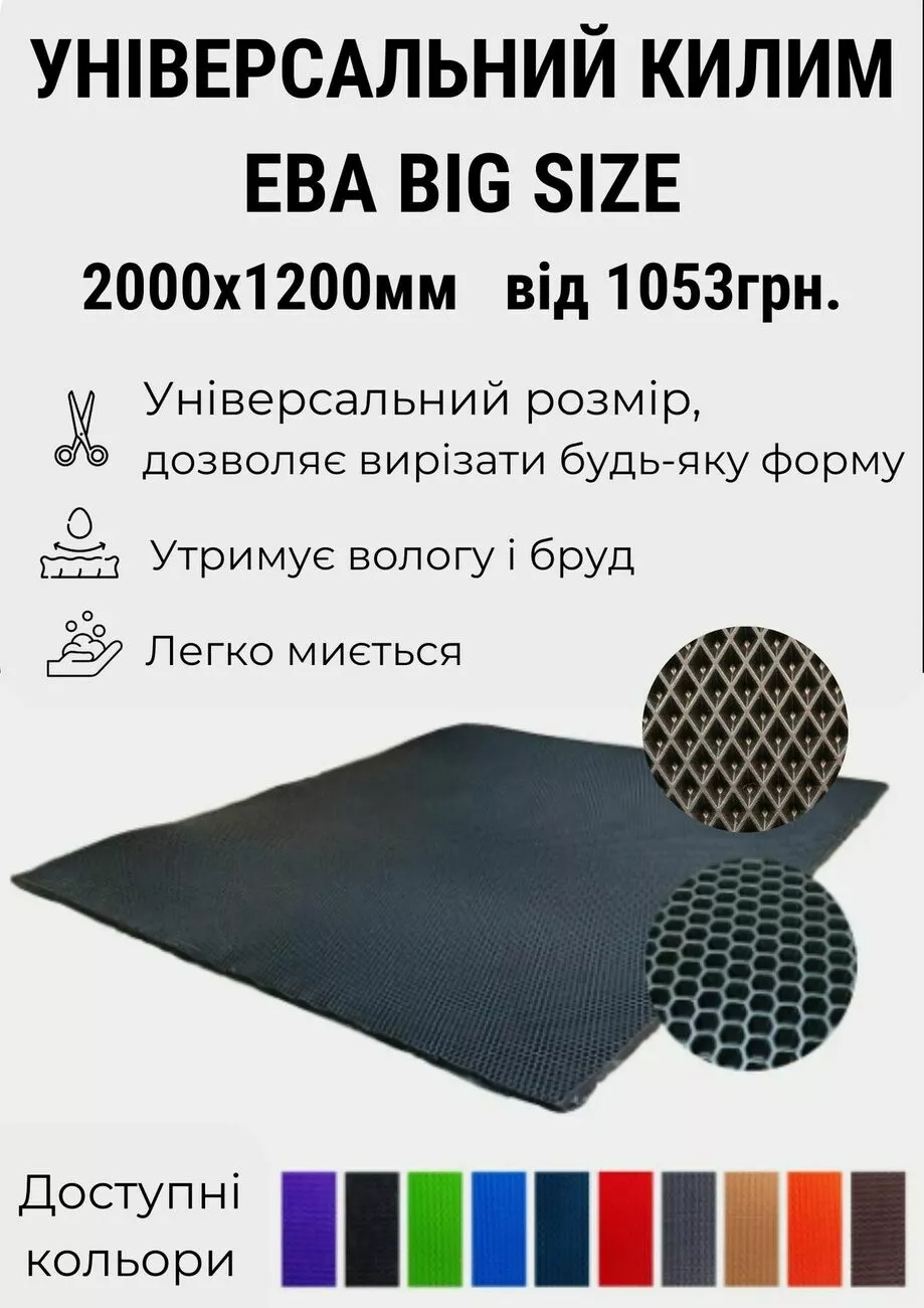 Килимки з інноваційного матеріалу ЕВА стануть не тільки корисним аксесуаром, але й справжньою окрасою будь-якого будинку, квартири, кухні, ванної кімнати або офісу. Завдяки унікальній структурі матеріалу такий килимок допоможе підтримувати ідеальну чистоту будь де, незалежно від використання, прохідності, пори року і погодних умов.