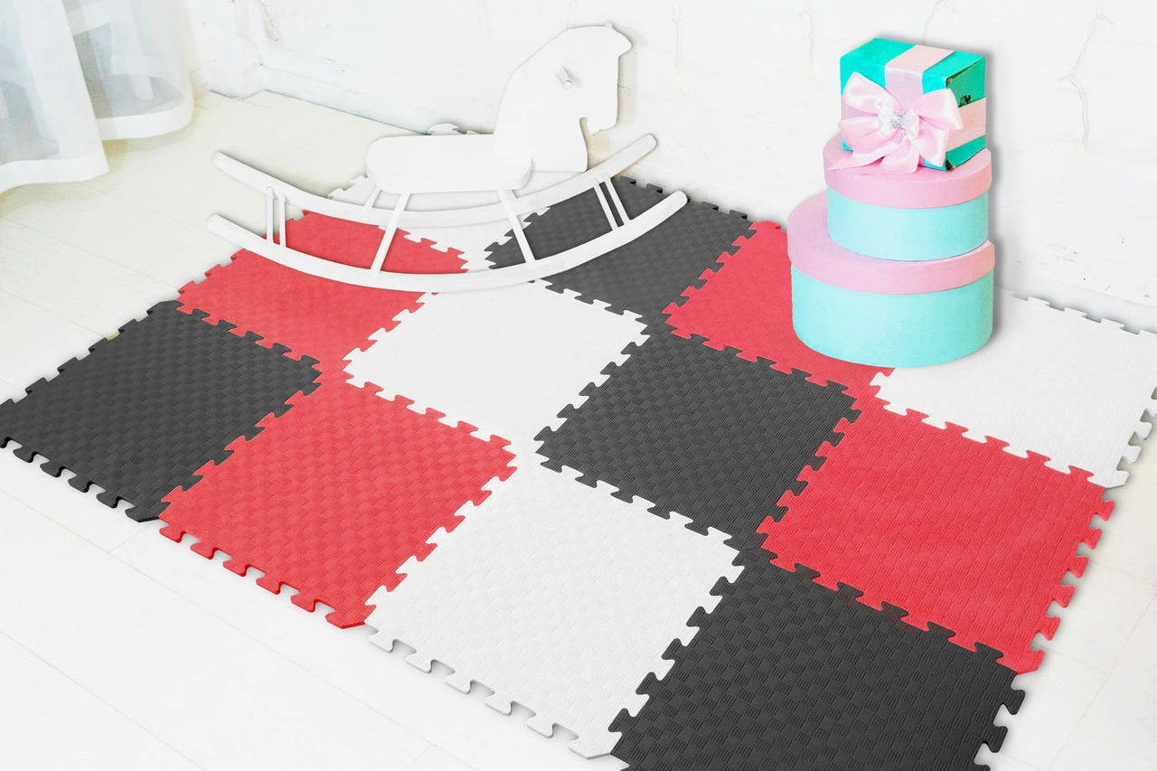 Мягкий пол коврик-пазл "Радуга" Eva-Line 200*150*1 см Серый/Белый/Красный– экологически чистое напольное покрытие для детских комнат, игровых зон, спортивных залов, гостиной, спальни, балконов.