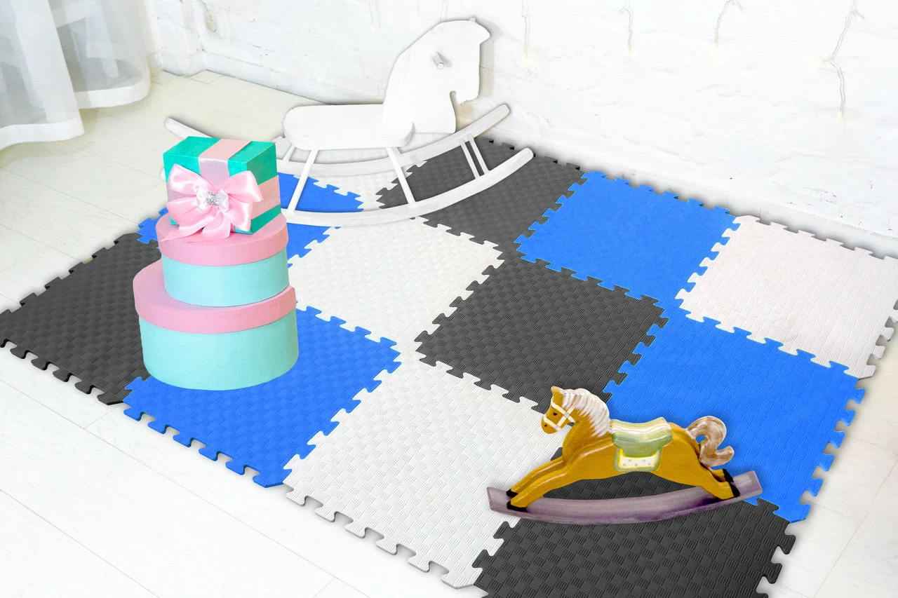 Мягкий пол коврик-пазл "Радуга" Eva-Line 200*150*1 см Серый/Белый/Синий– экологически чистое напольное покрытие для детских комнат, игровых зон, спортивных залов, гостиной, спальни, балконов.