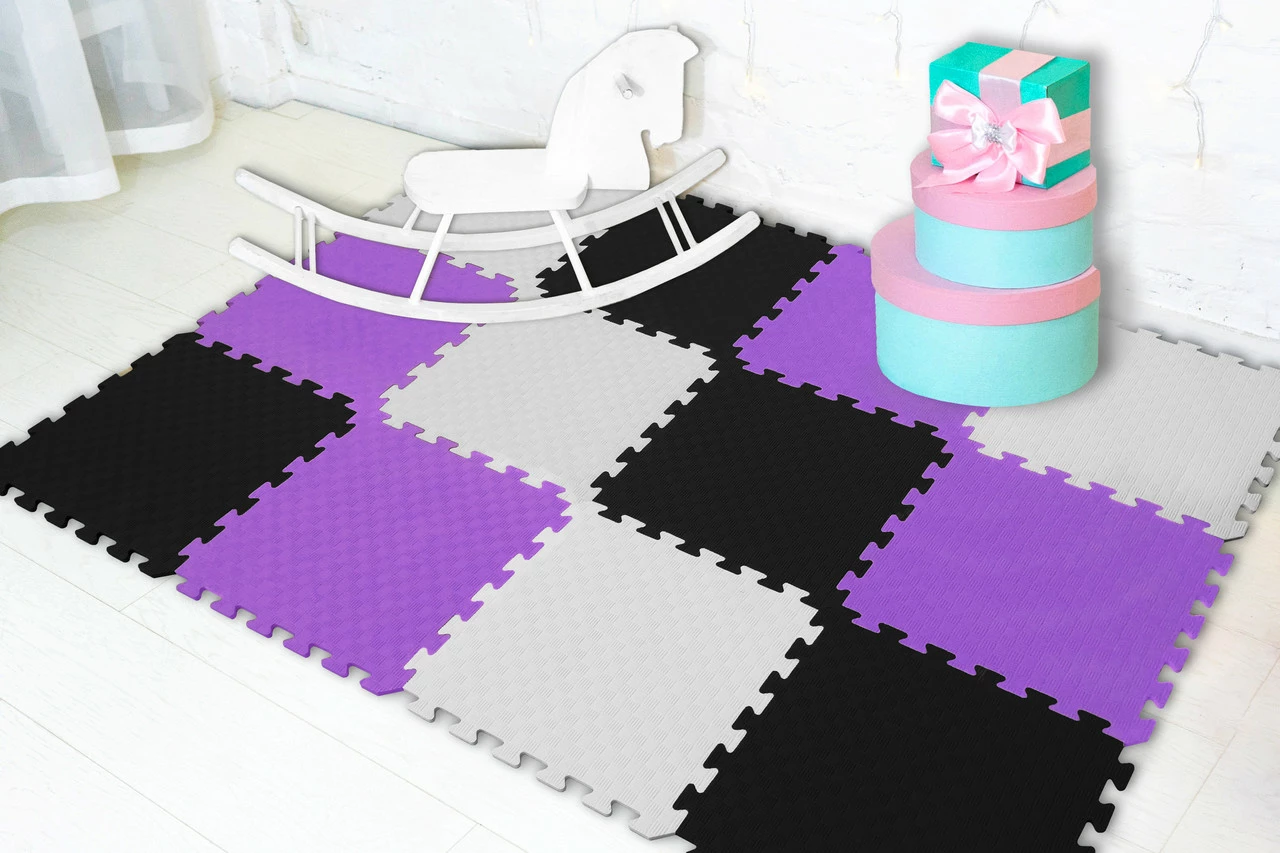 Мягкий пол коврик-пазл "Радуга" Eva-Line 200*150*1 см Черный/Белый/Фиолетовый – экологически чистое напольное покрытие для детских комнат, игровых зон, спортивных залов, гостиной, спальни, балконов.