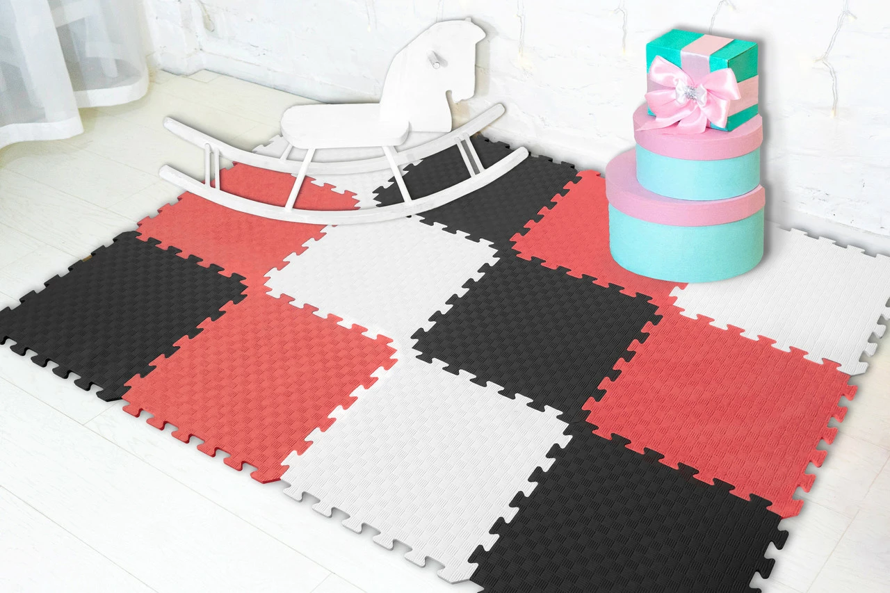 Мягкий пол коврик-пазл "Радуга" Eva-Line 200*150*1 см Черный/Белый/Красный – экологически чистое напольное покрытие для детских комнат, игровых зон, спортивных залов, гостиной, спальни, балконов.