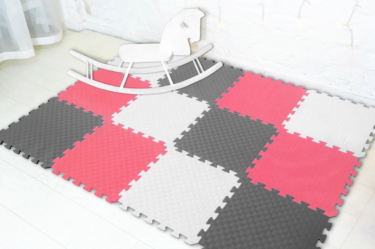 Мягкий пол коврик-пазл "Радуга" Eva-Line 200*150*1 см Серый/Белый/Коралловый– экологически чистое напольное покрытие для детских комнат, игровых зон, спортивных залов, гостиной, спальни, балконов.