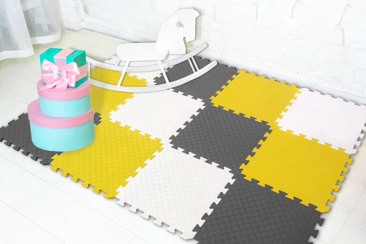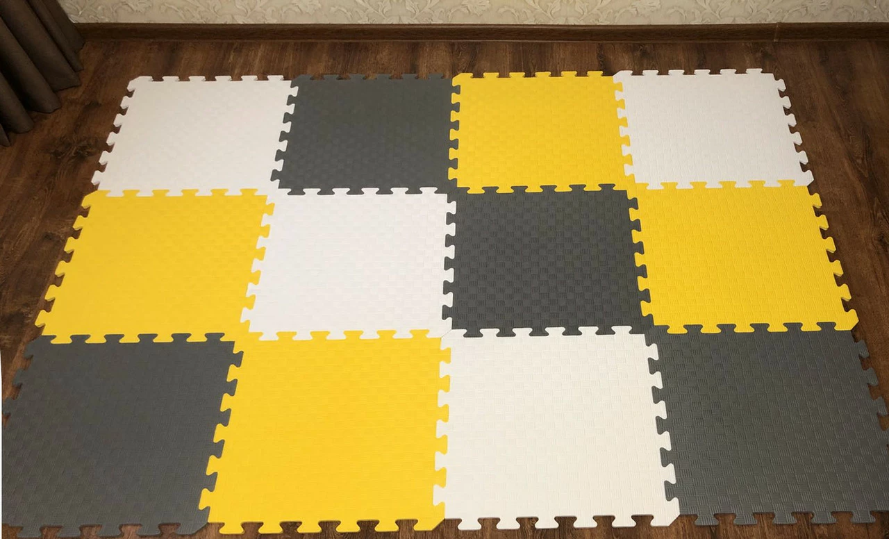 Мягкий пол коврик-пазл "Радуга" Eva-Line 200*150*1 см Серый/Белый/Желтый – экологически чистое напольное покрытие для детских комнат, игровых зон, спортивных залов, гостиной, спальни, балконов.