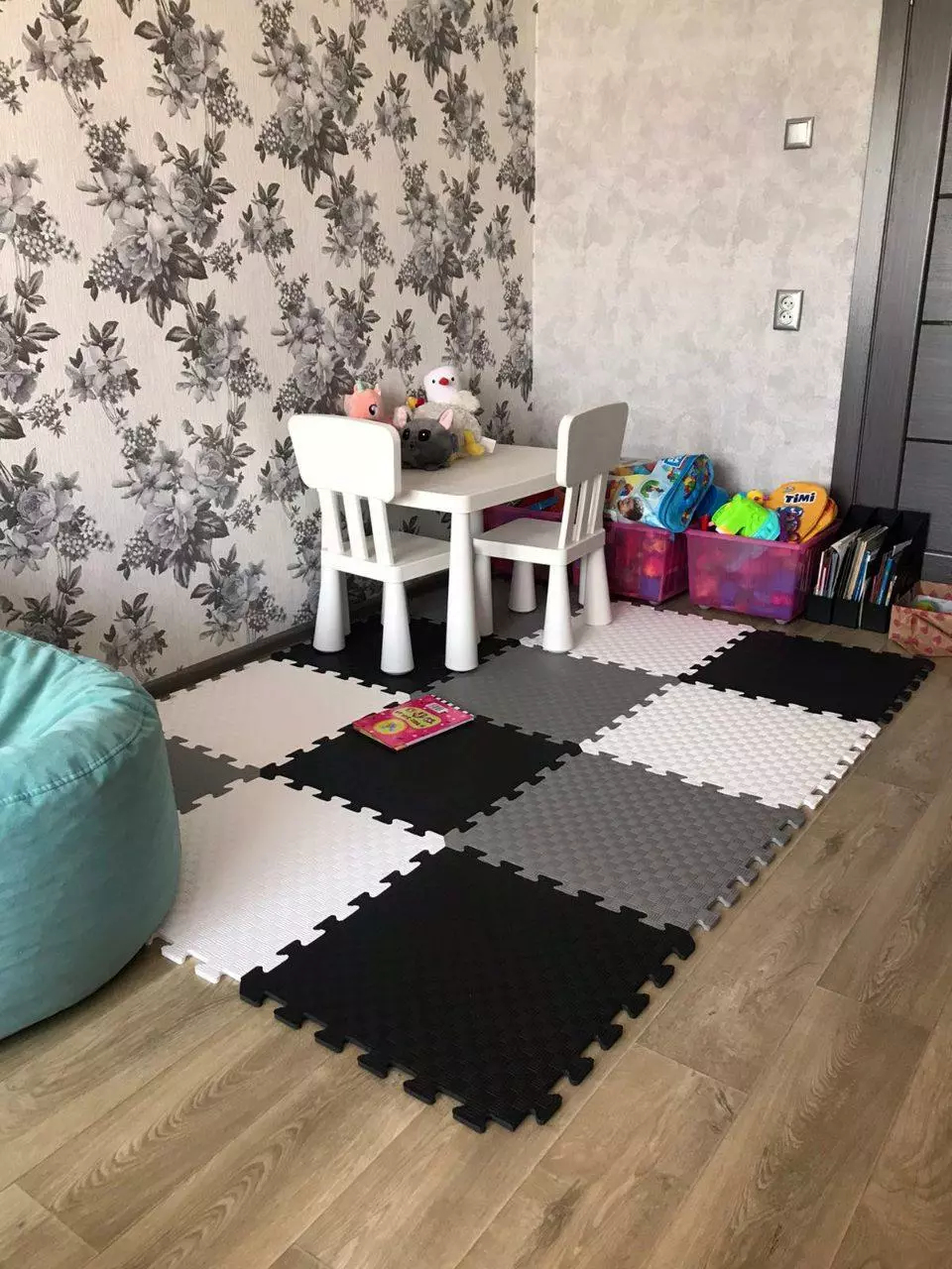 В отличии от обычных ковров - наш мягкий пол коврик-пазл из ЭВА не собирает в себе пыль, так же легко моется.